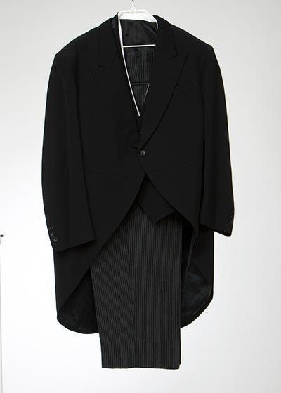 MN6OW-20◆ワイド モーニングレンタル O6号(身長175-180肩幅52袖丈60ウエスト92-113股下70) ◆細ストライプ